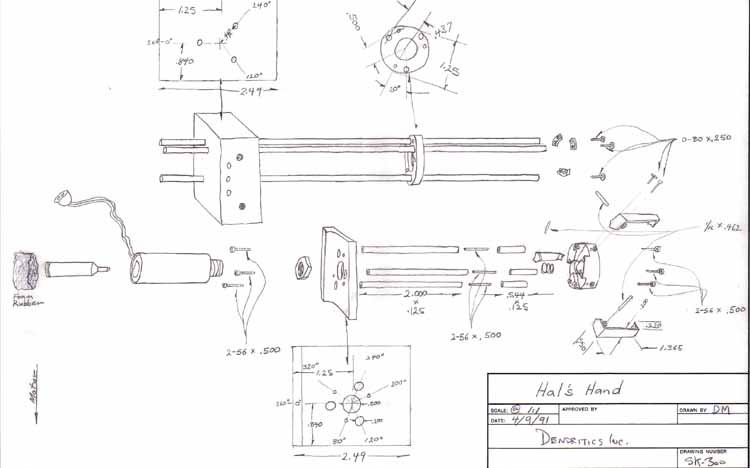 A plan Duncan drew up for Hal's hand. Note that the gripper above is on the right of the drawing.