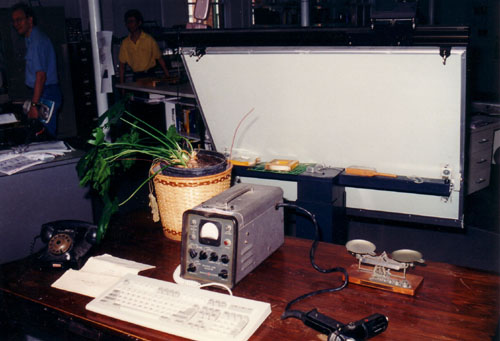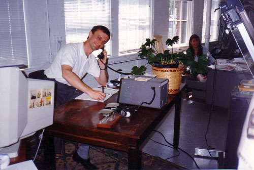 Vova was an extremely entertaining and well liked chap. He must have had the greatest collection of ready jokes and humor in the history of Dendritics. HE could always be counted on to lighten up any situation. Here, he is attempting a communication with the celestial spheres, using his Geiger 486 computer. Another view of the scene shows more goofiness.